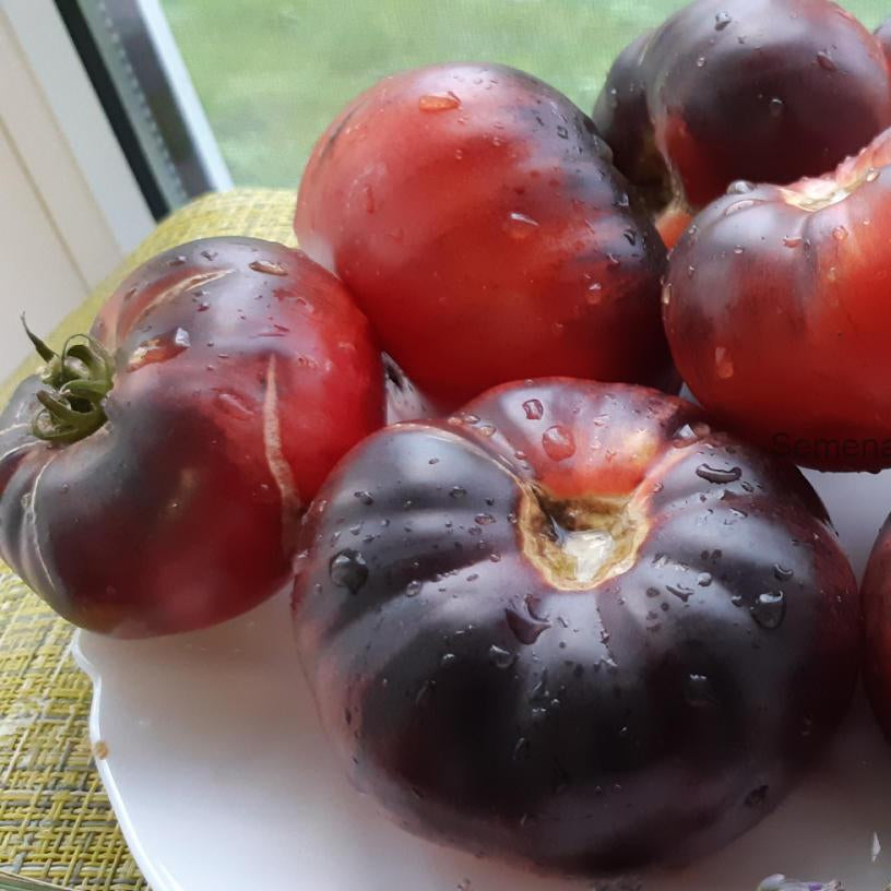 This new variety was carefully bred from an cross between Pink Berkeley Tie Dye and Indigo Rose by Andy Forthy. Unveiled at the 2017 Brussels Tomato Festival, this unique variety was named in tribute to Valérie-Anne Foriers and Boris Moureau.